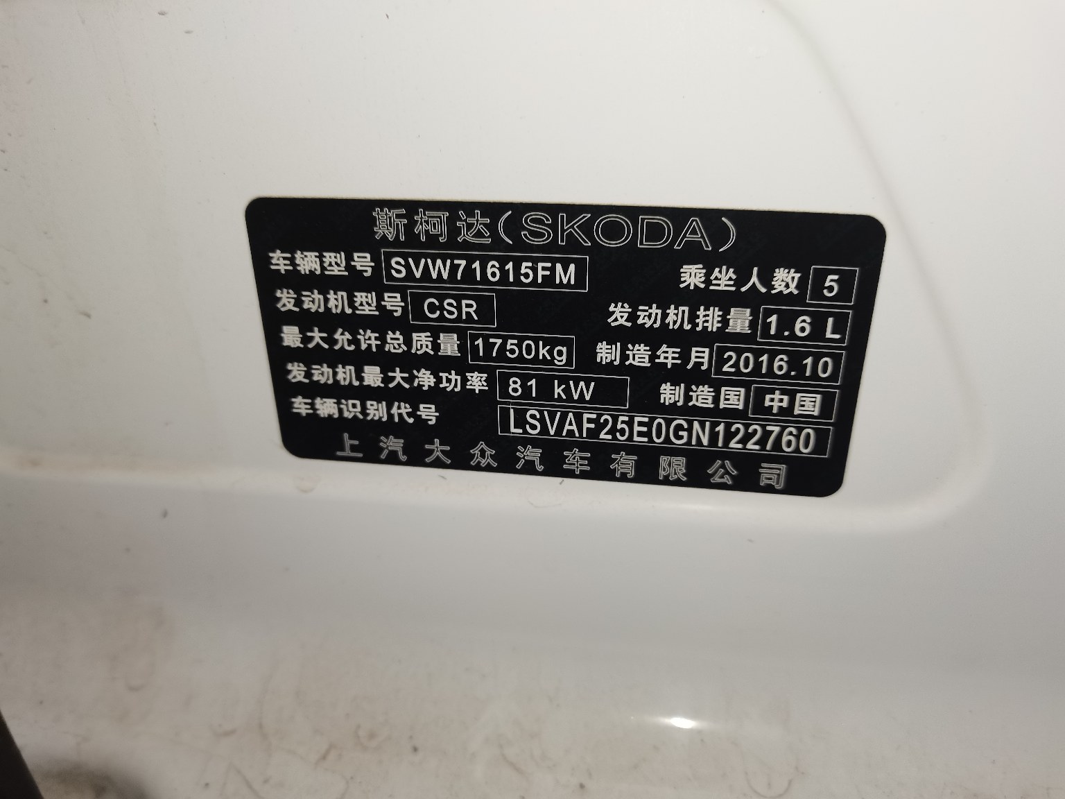 车架号:LSVAF25E0GN122760